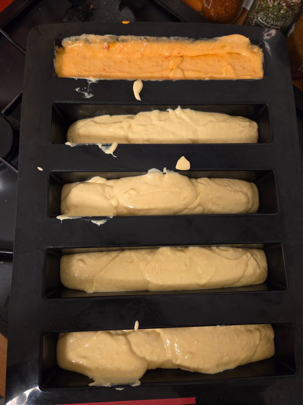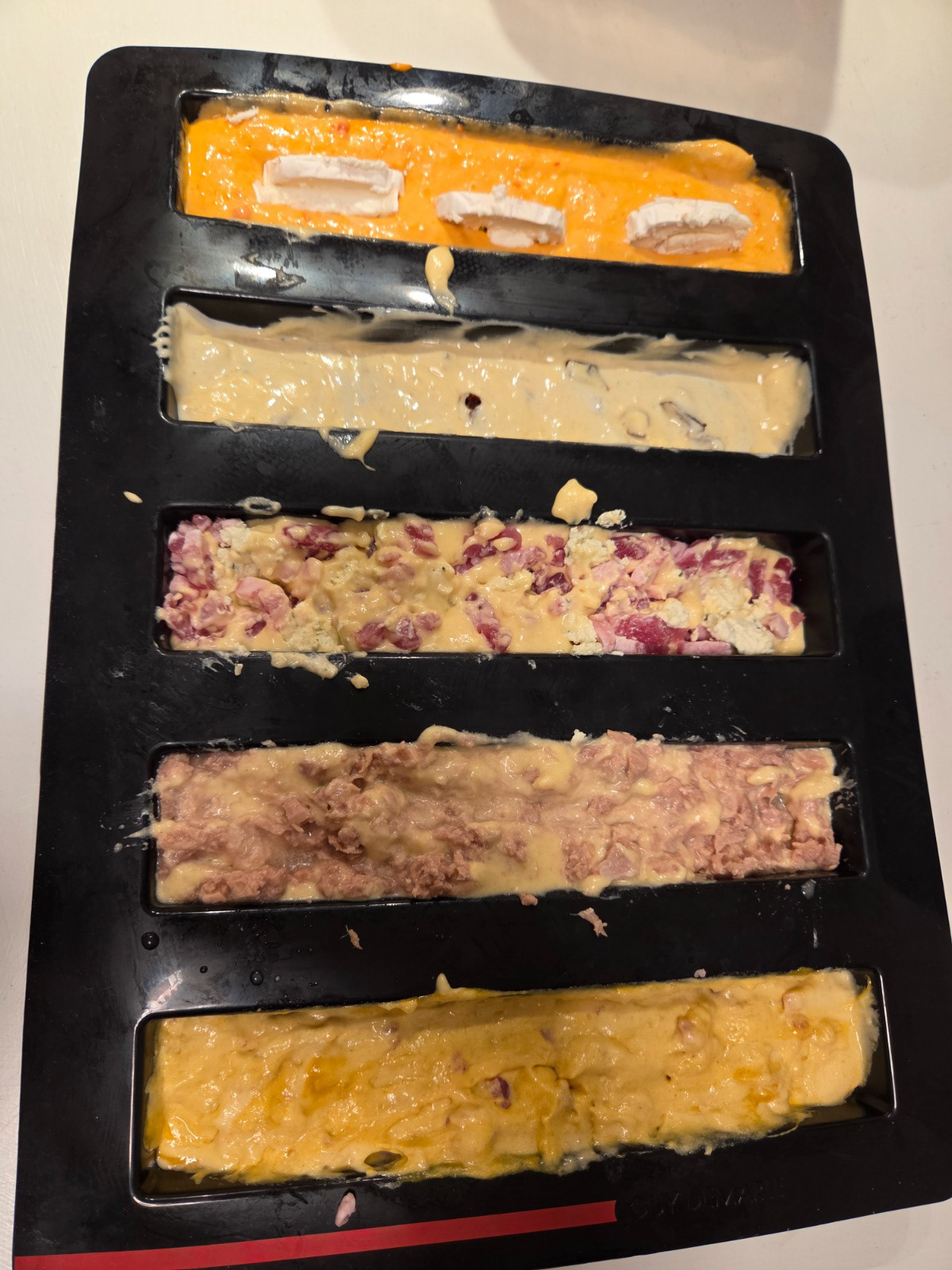 5 - Et dans chaque empreintes, rajouter les ingrédients par cake, mélanger à
