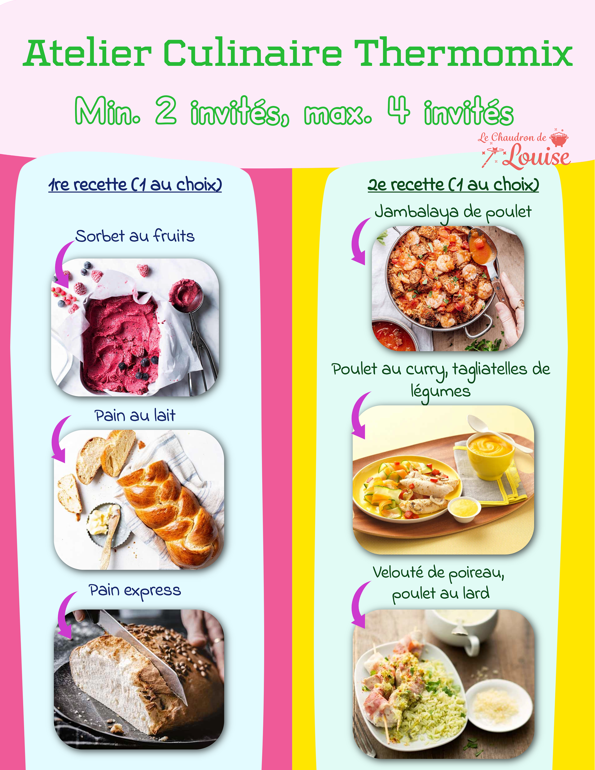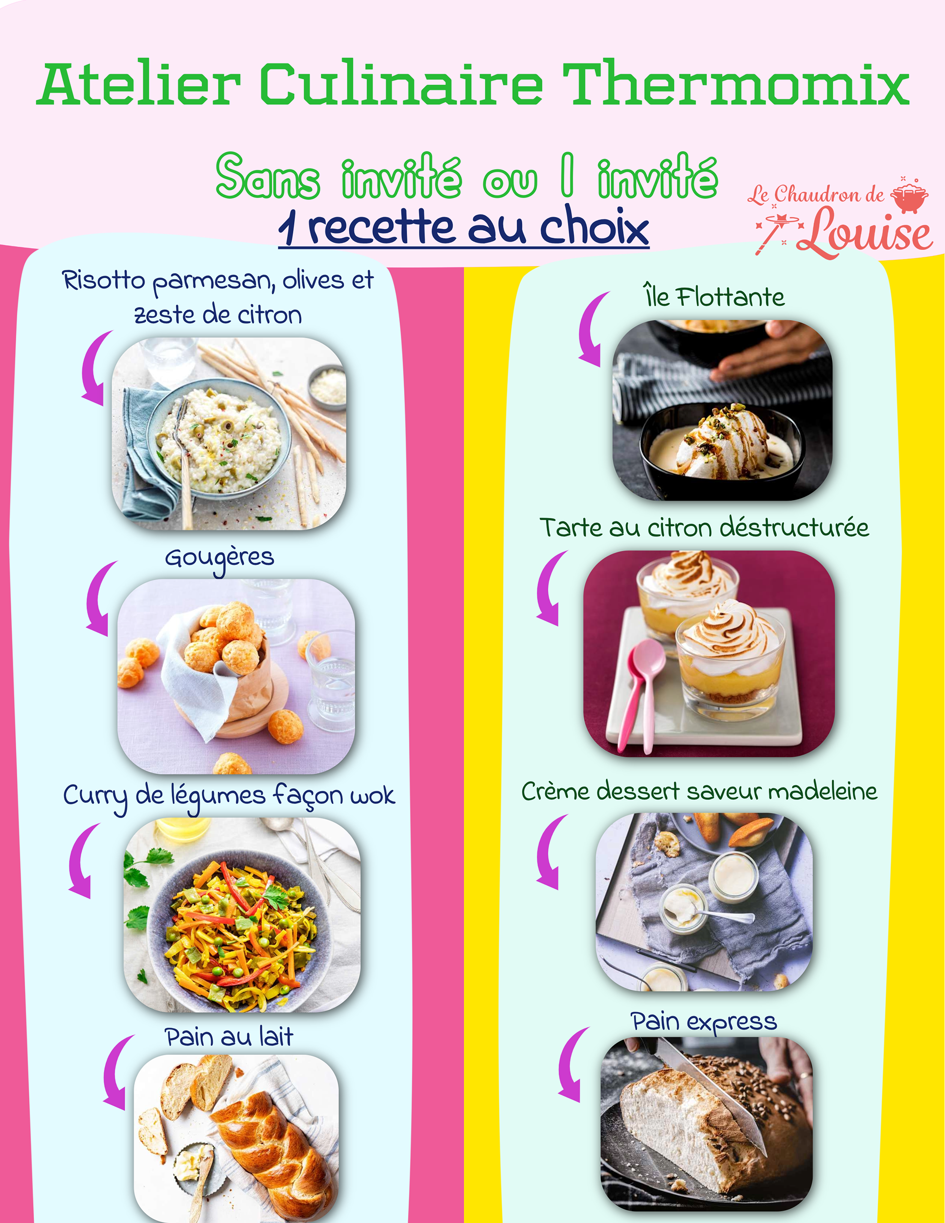 A vous de choisir la recette que vous souhaitez réaliser au Thermomix lors de l'atelier culinaire !