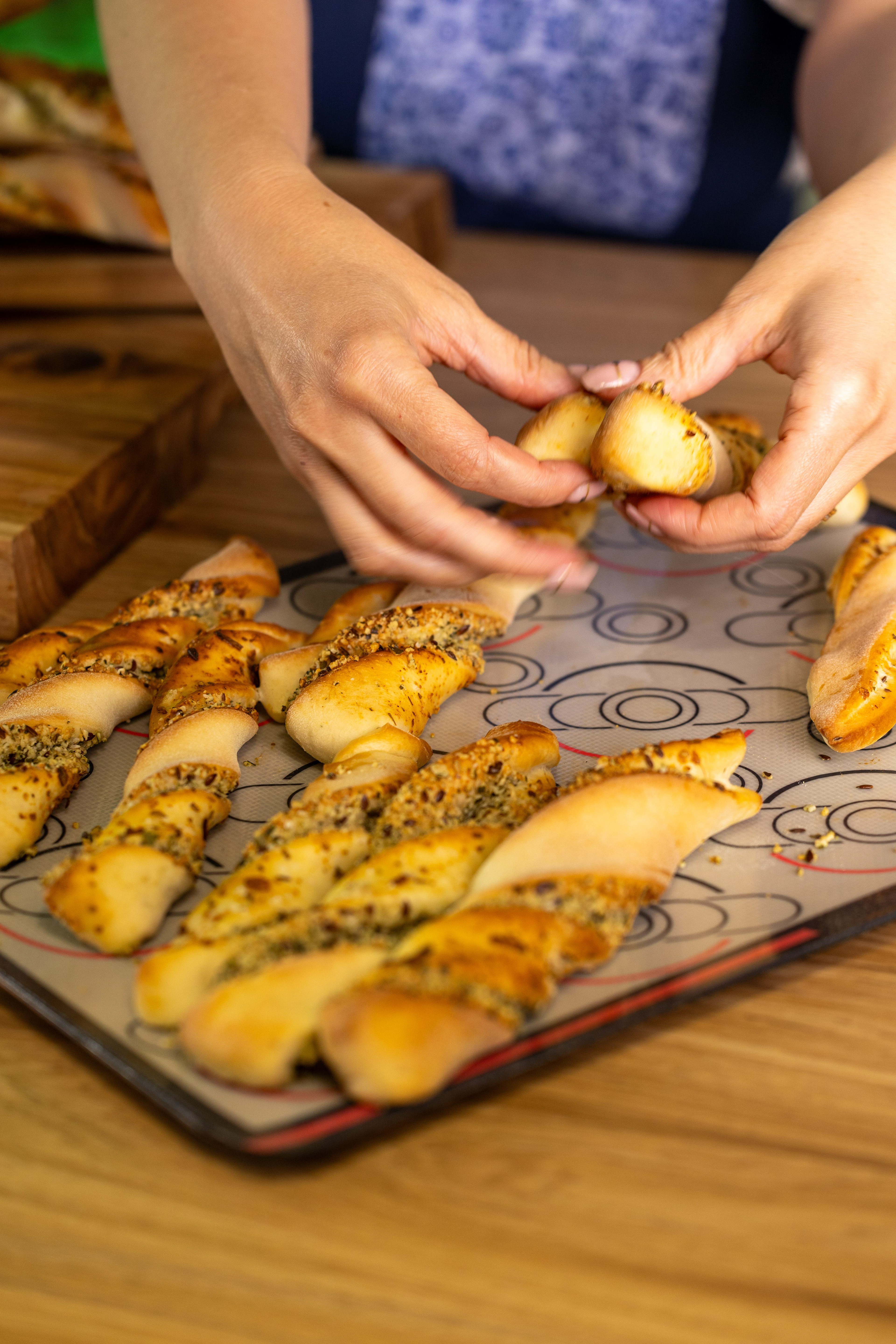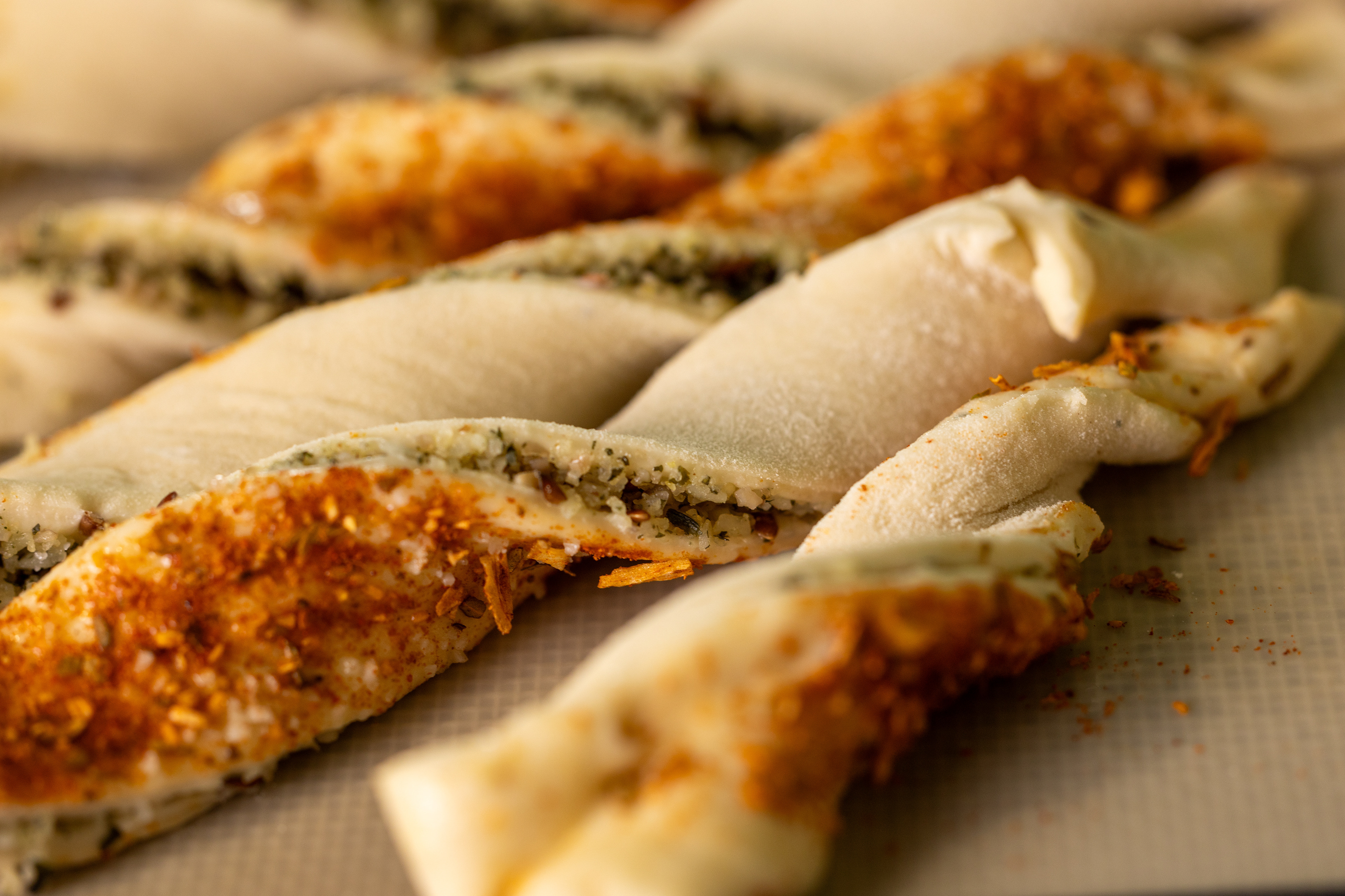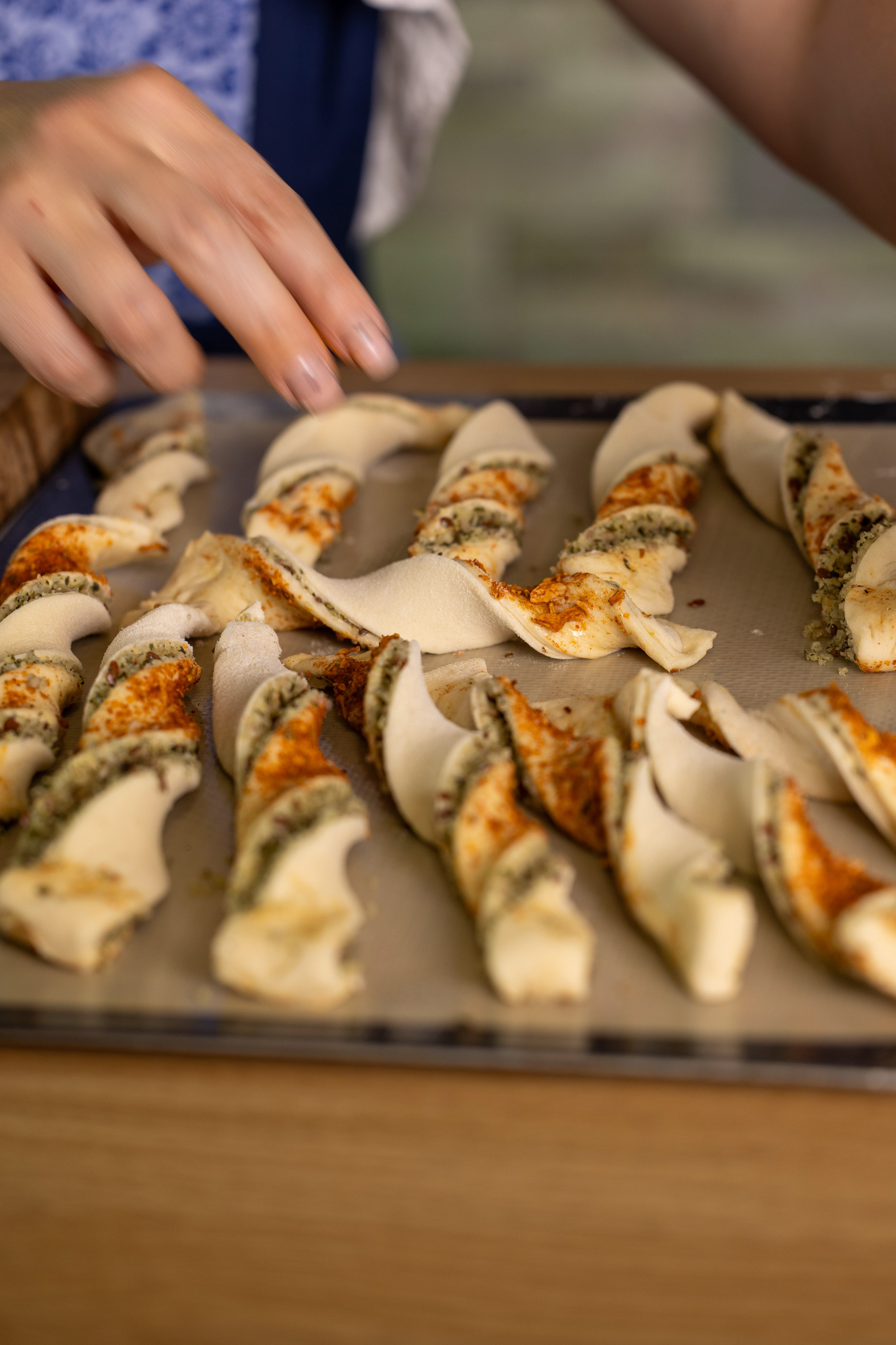 11 - Disposer les bâtonnets sur 2 plaques tapissées de la toile de cuisson boulangère Guy Demarle.