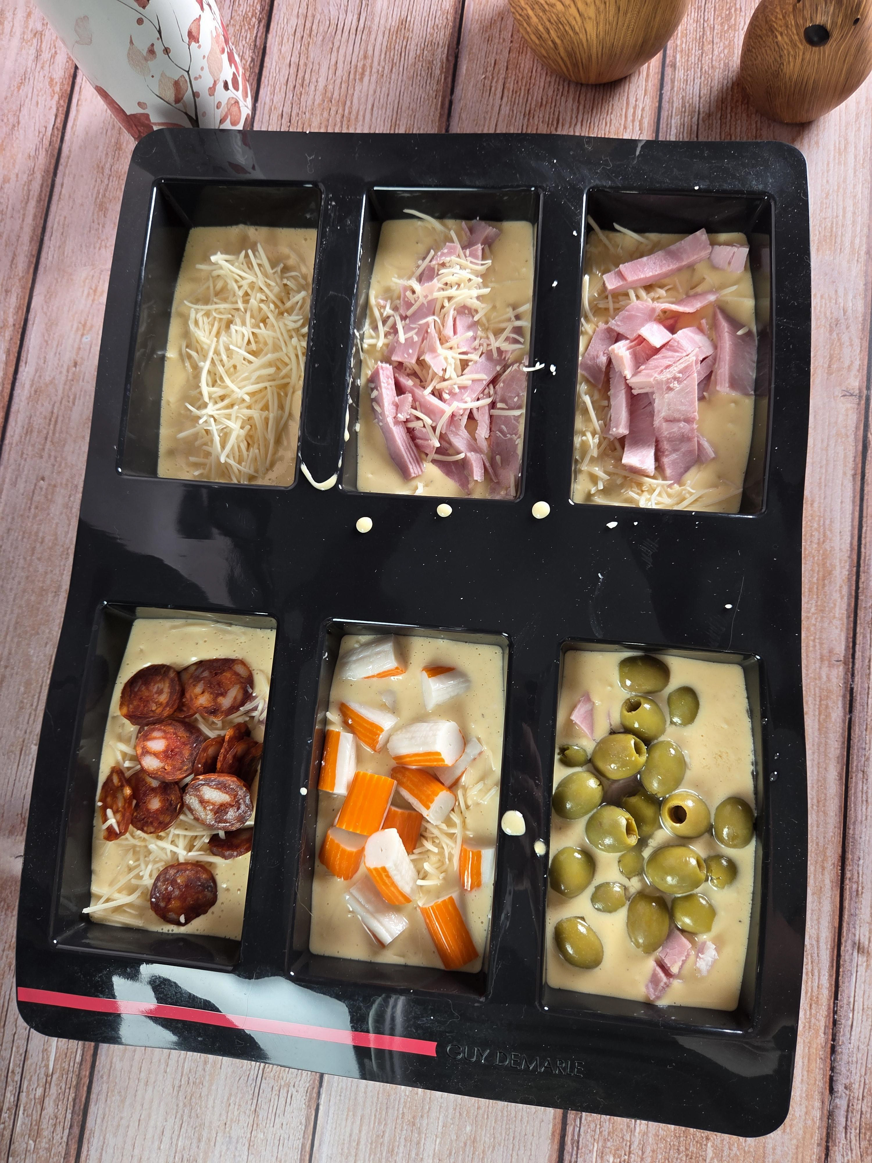 5 - Répartir la pâte dans les 6 empruntes.