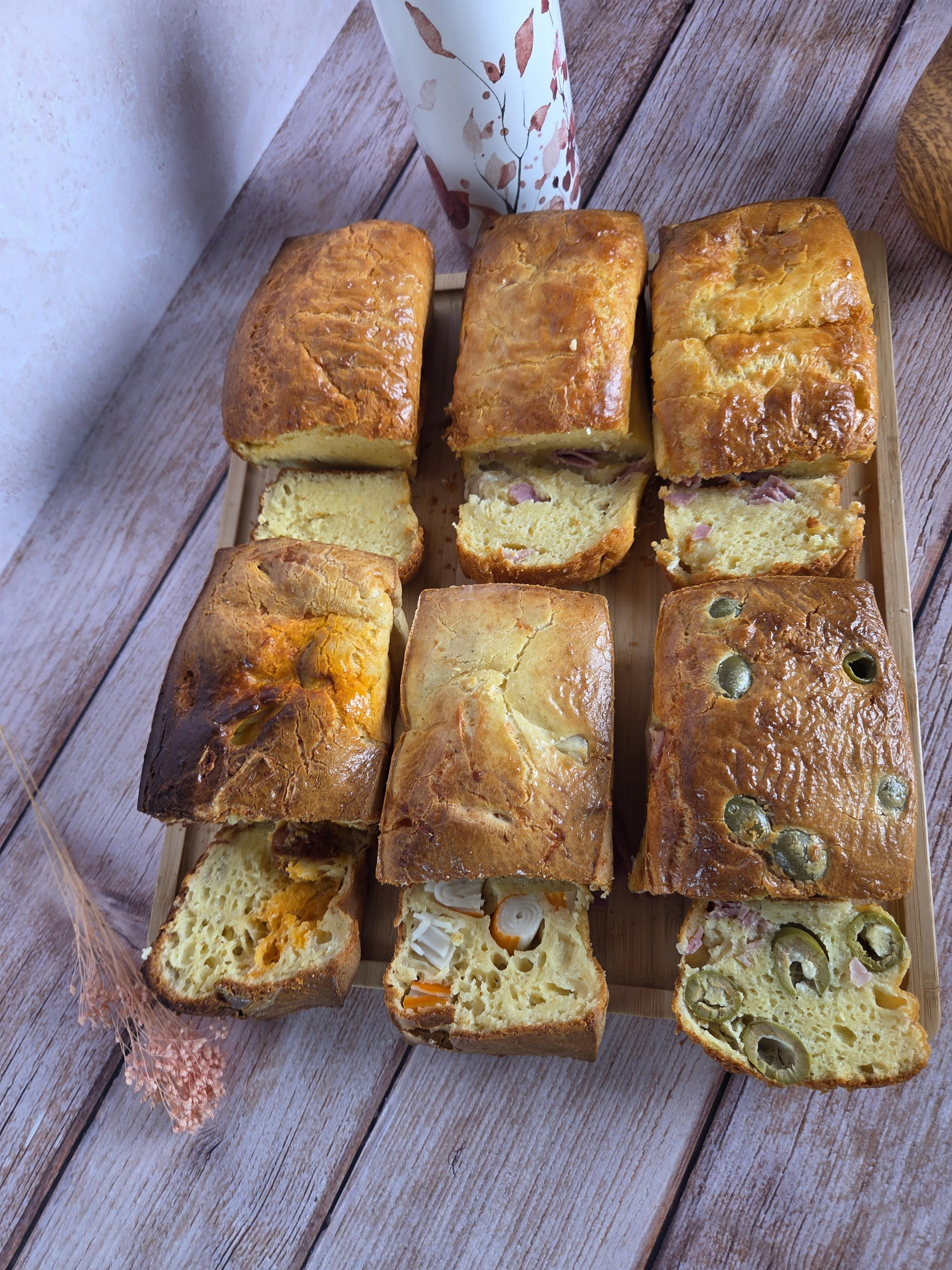 Cake 2 – Tomates séchées (40 g) + olives noires (40 g)