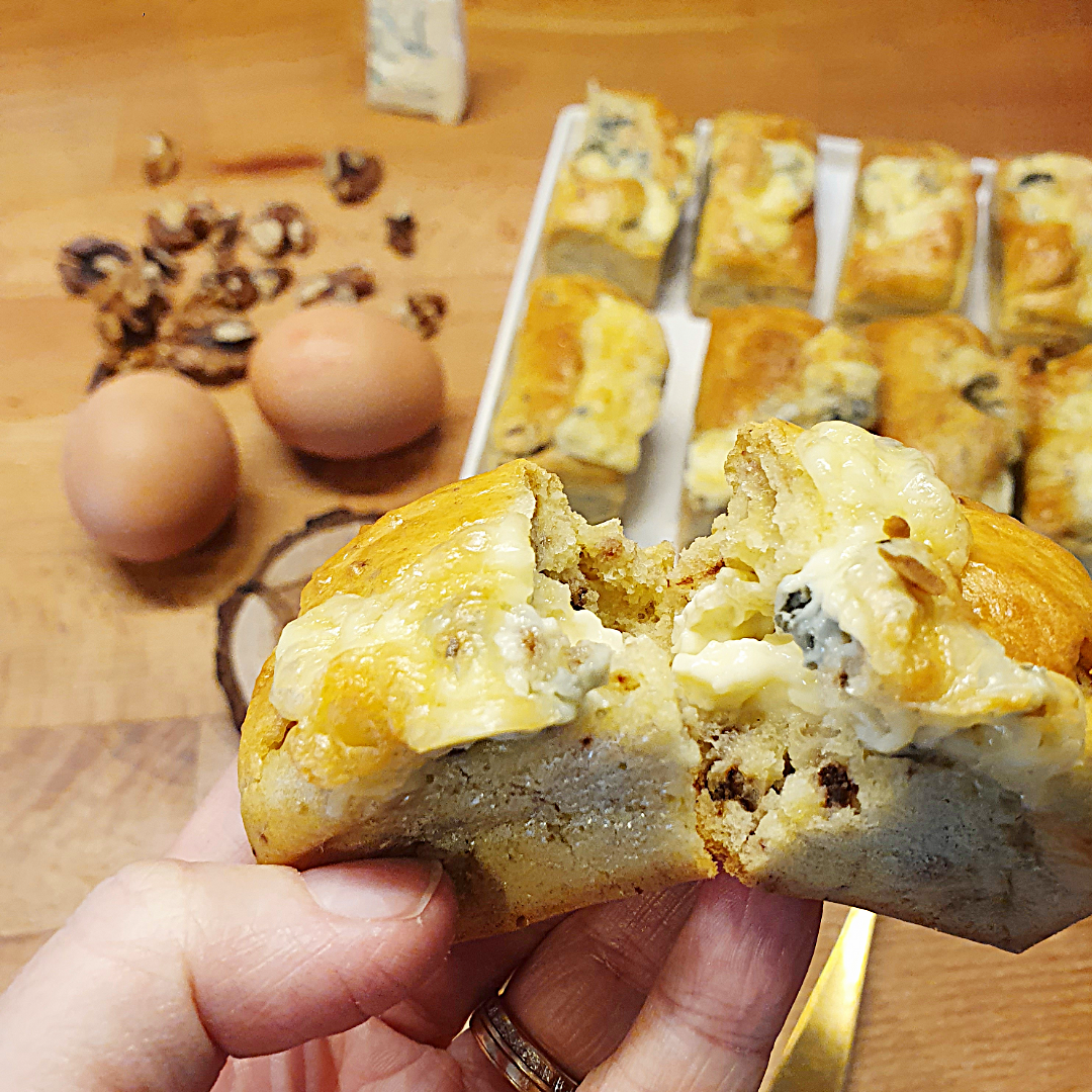 4. Glisser un morceau de fromage bleu dans chaque mini-cake, en l’enfonçant légèrement au centre.