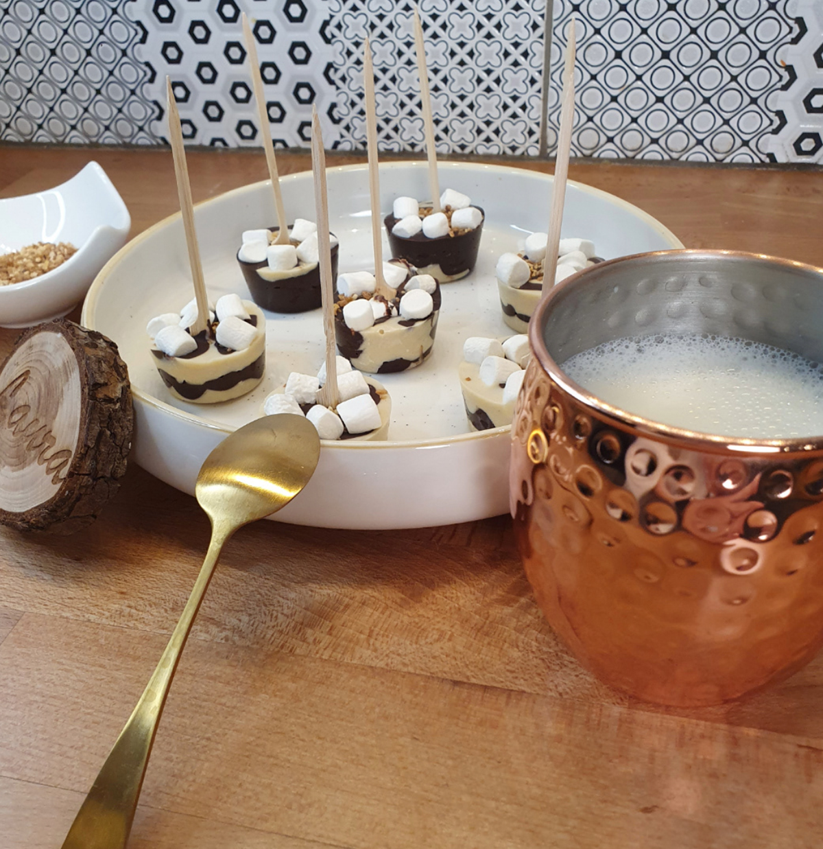 8. Garnir avec des petites guimauves et des éclats de noisette.