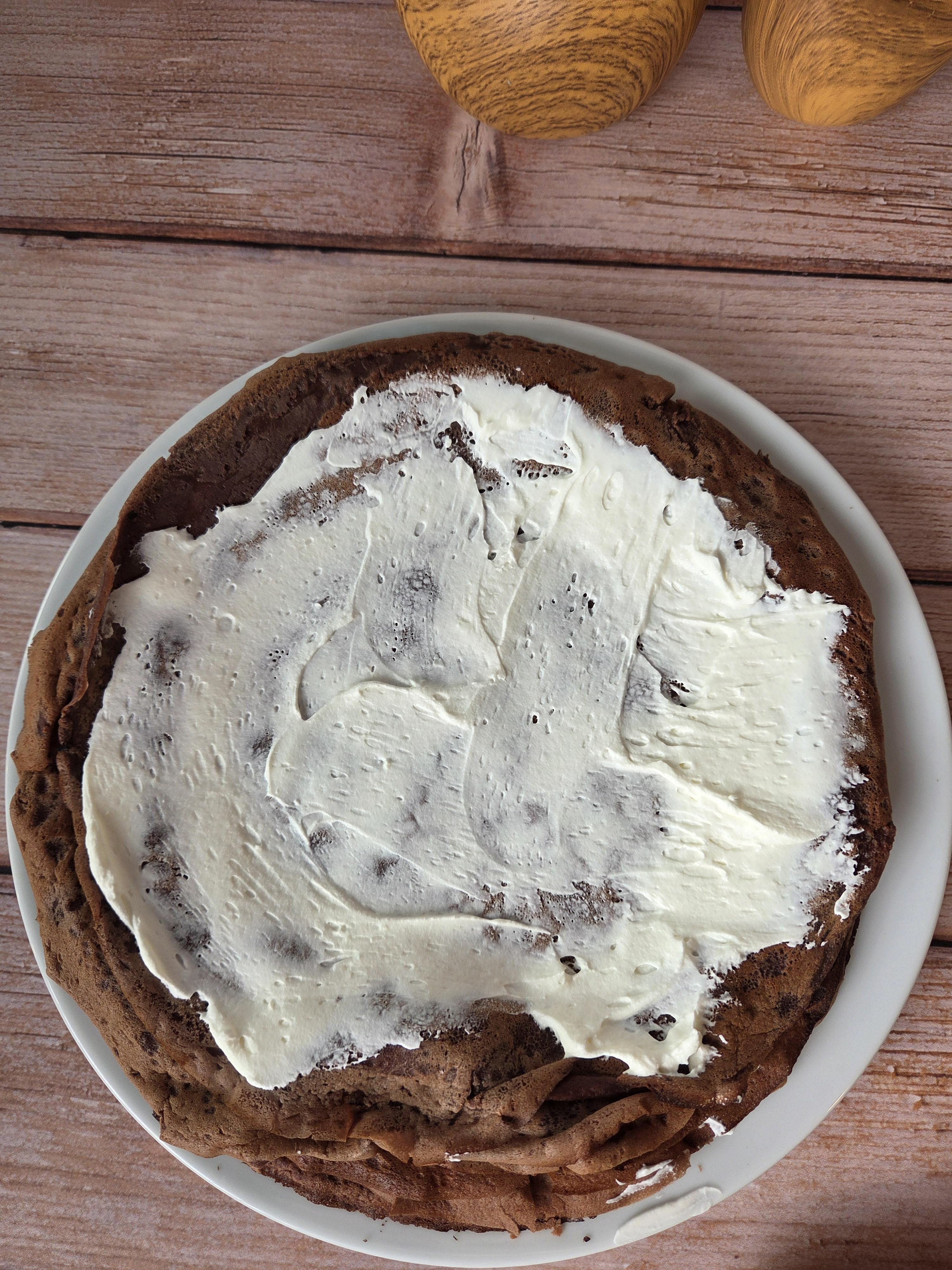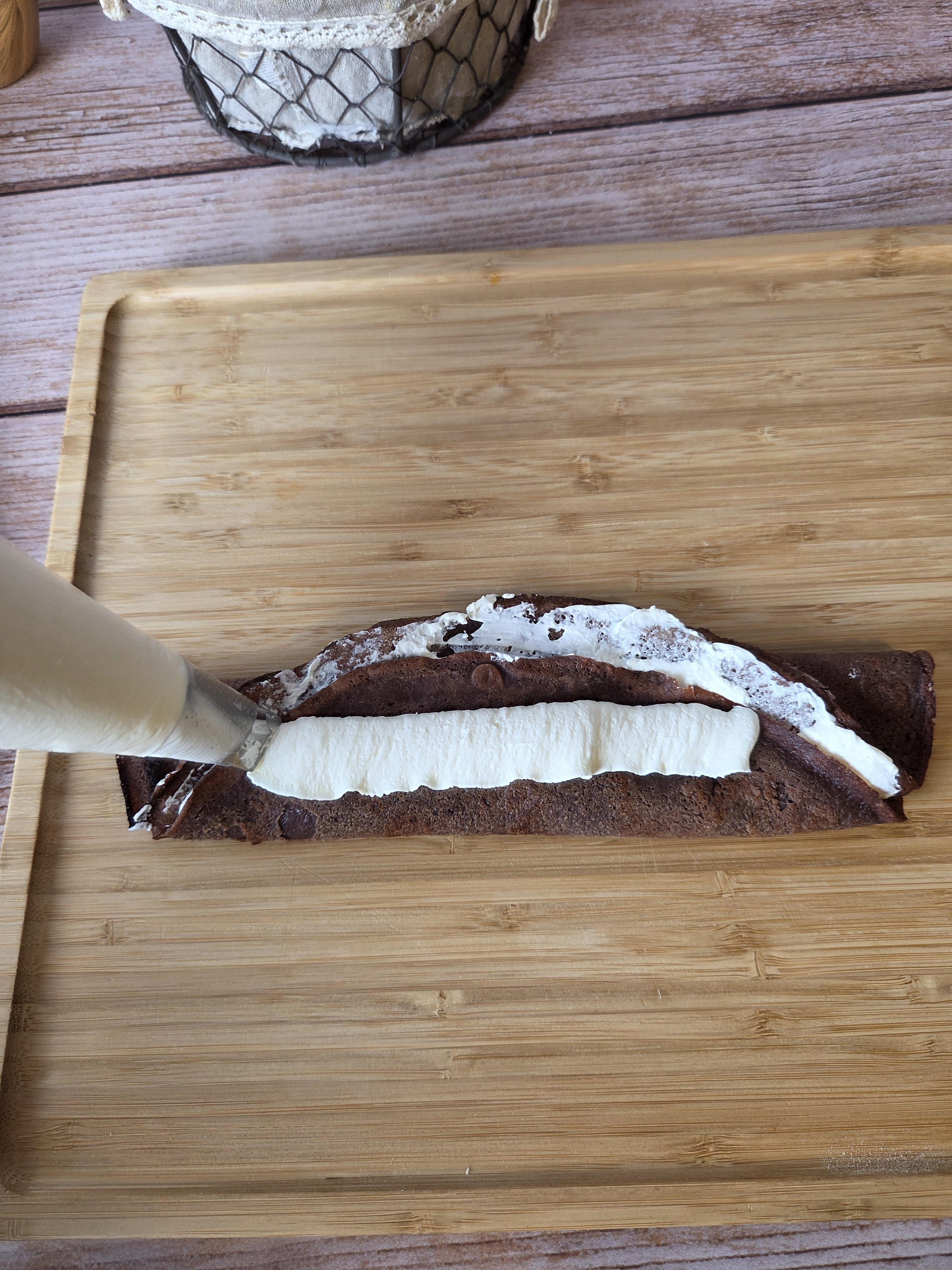 9. Étaler une fine couche de chantilly sur toute la surface d’une crêpe.