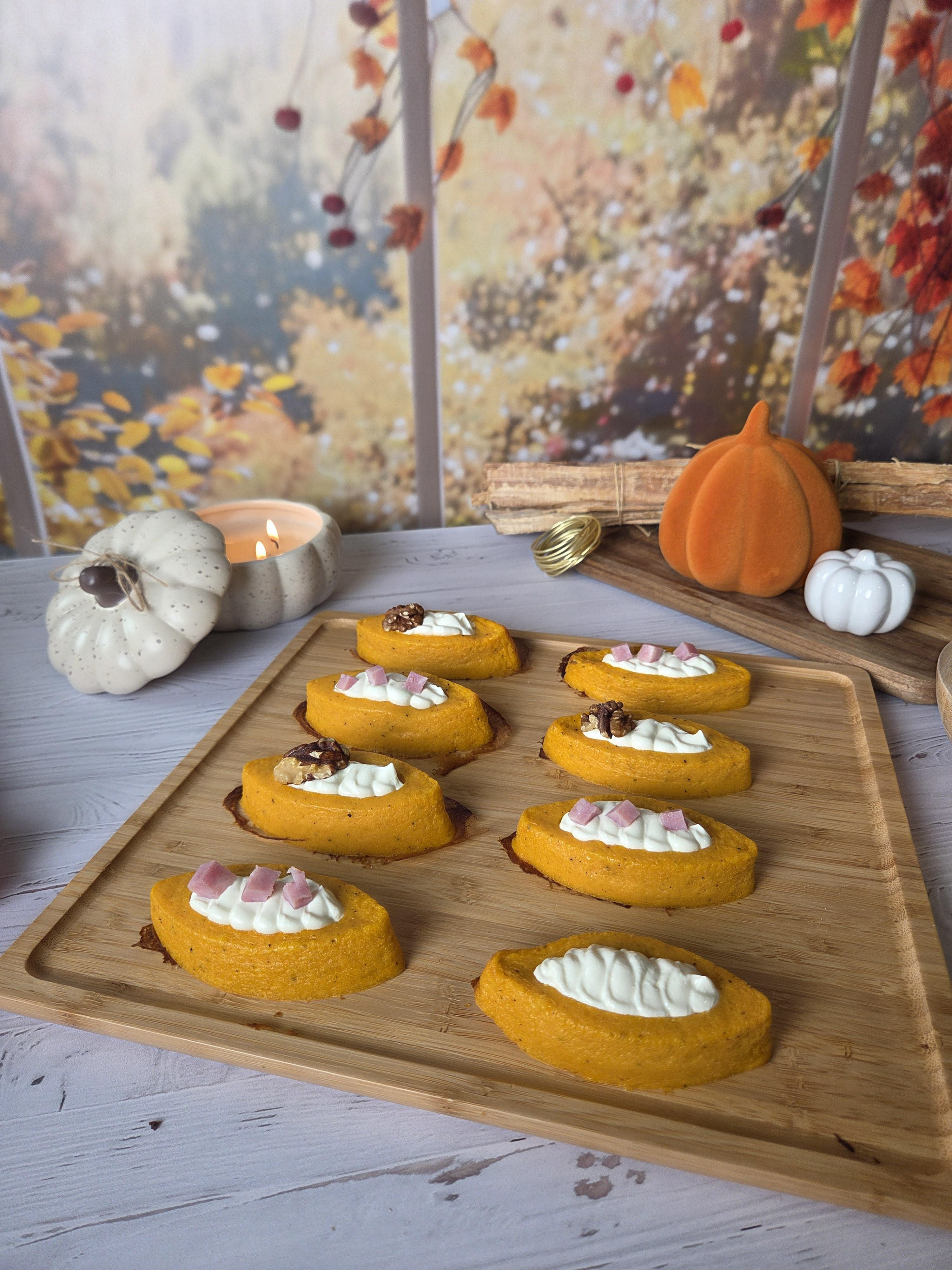 9. Garnir les creux avec 100 g de fromage frais à l’aide d’une poche à douille.