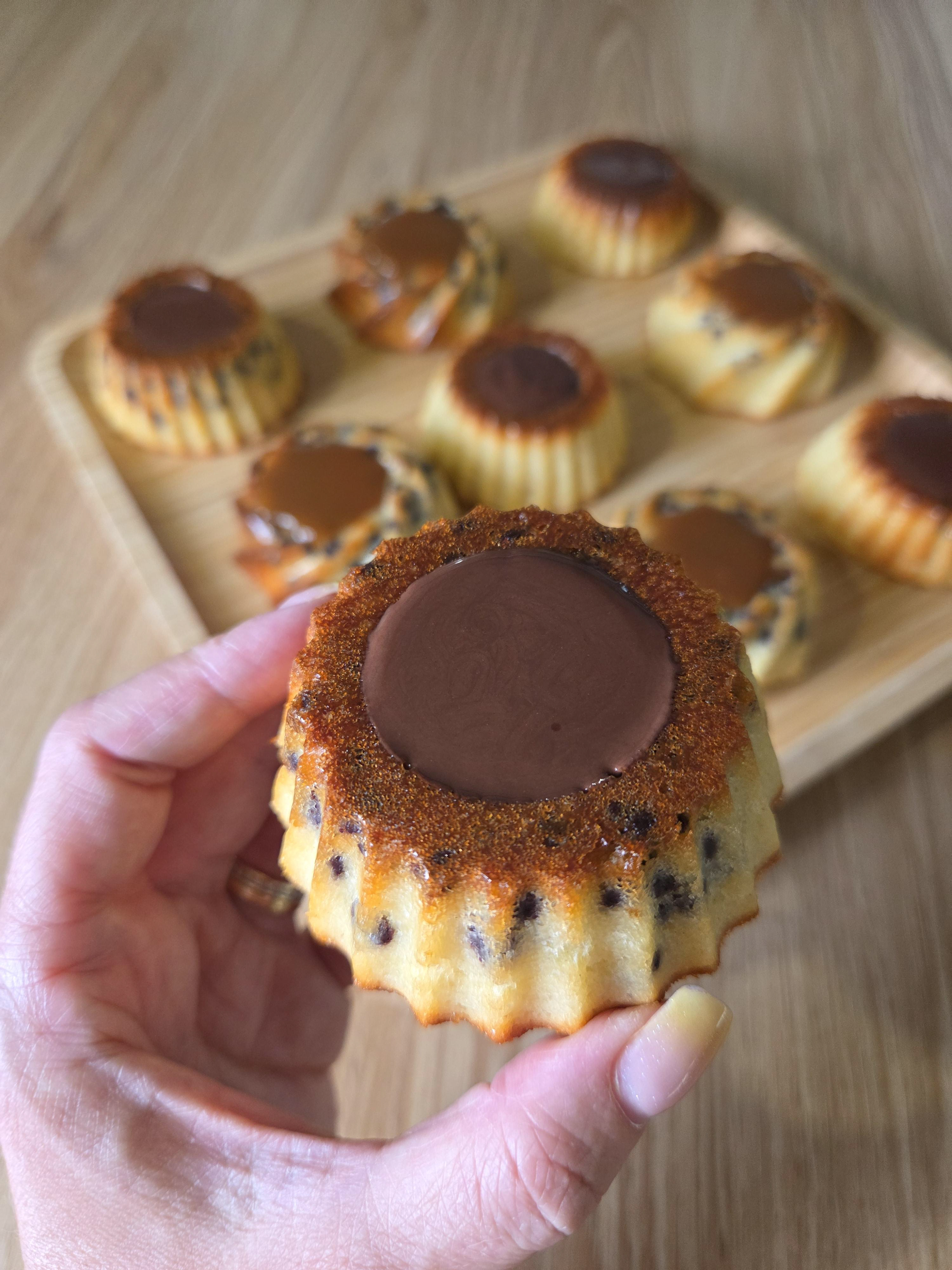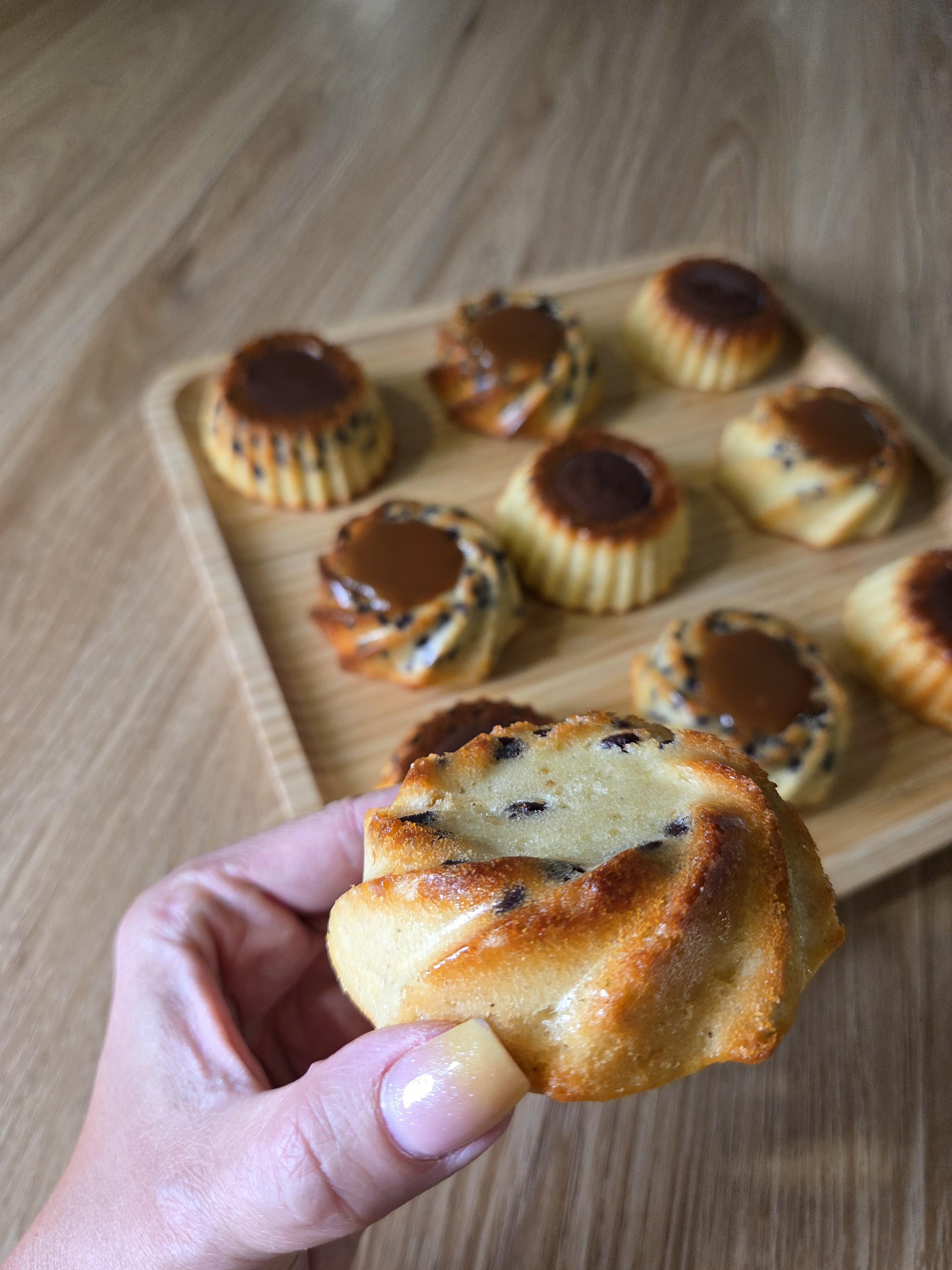 Astuce : Enrober les 100 g de pépites de chocolat d’un peu de farine avant de les ajouter à la préparation pour éviter qu’elles ne tombent au fond du gâteau.