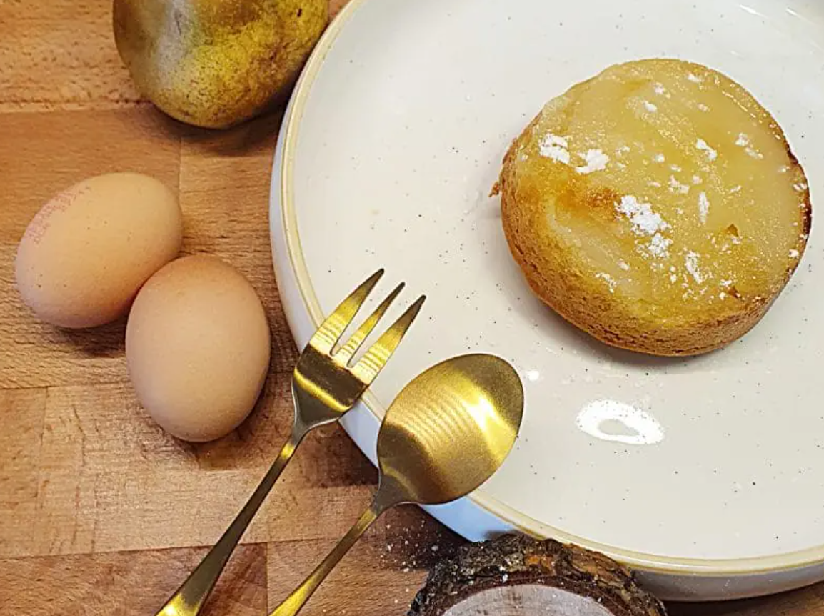 11 - Verser la pâte réservée sur les poires dans chaque empreinte.