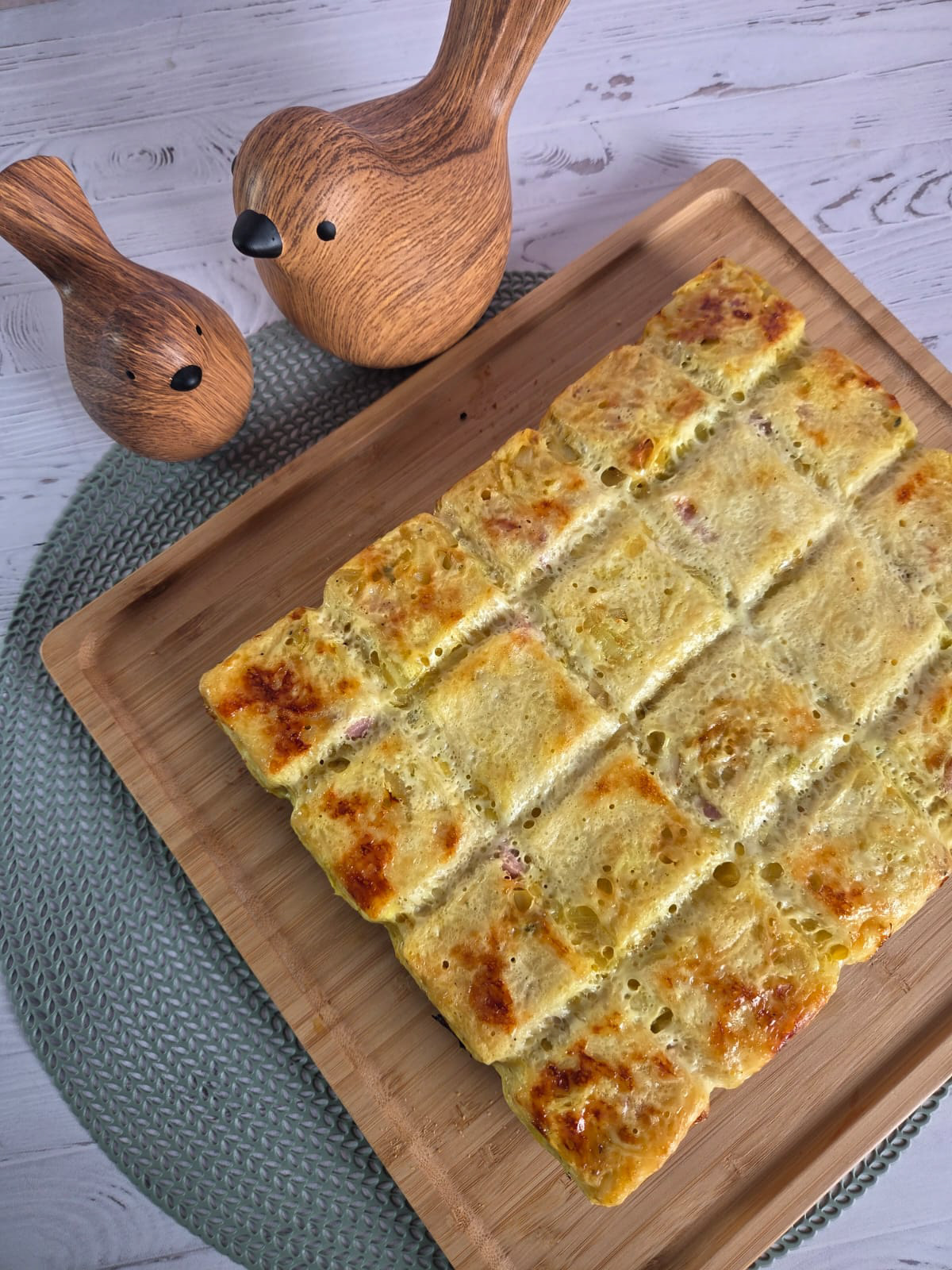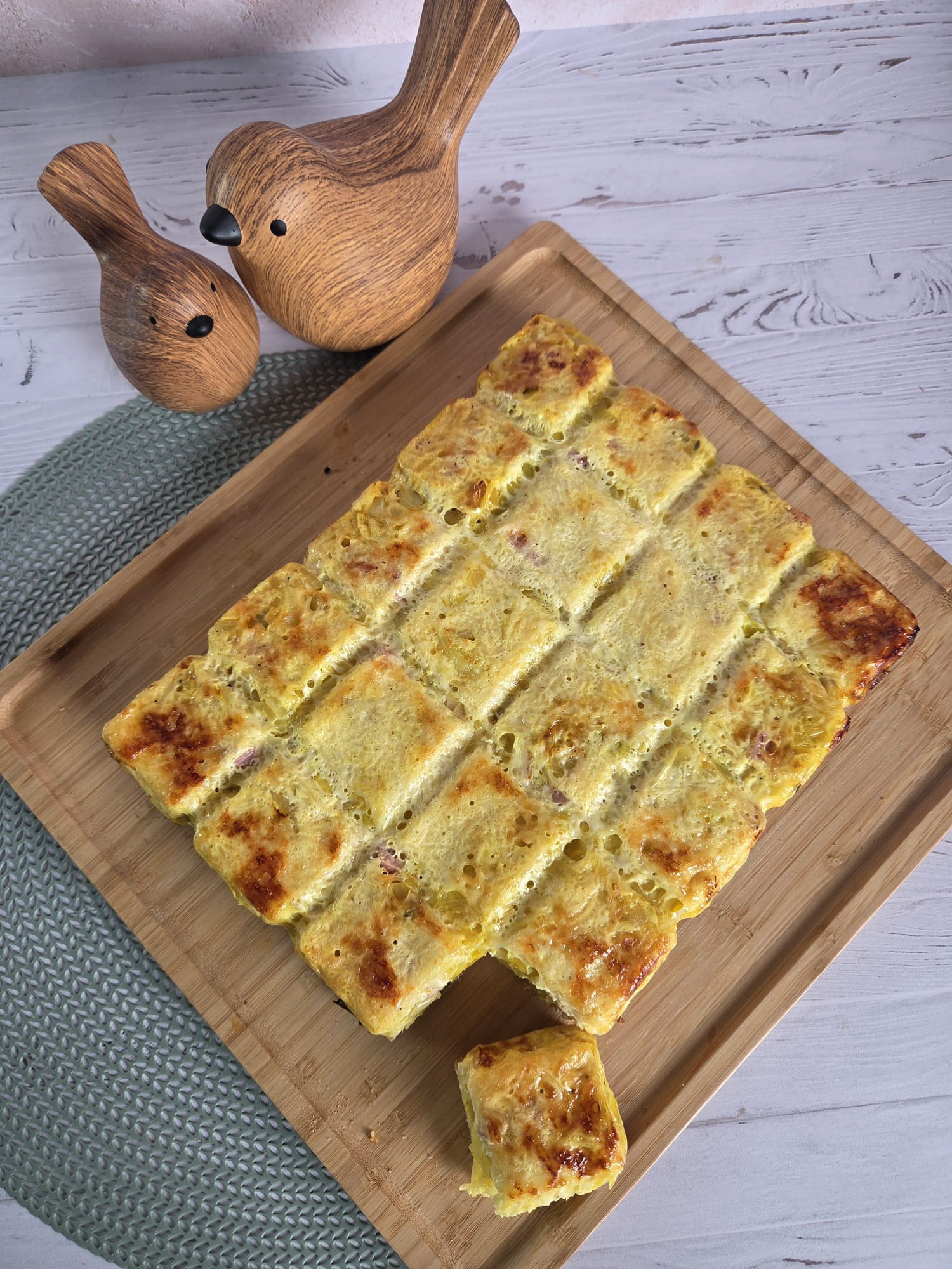 5 - Ajouter le mélange poireaux/oignon et 150 g d’allumettes de jambon. Mélanger pour obtenir une garniture uniforme.