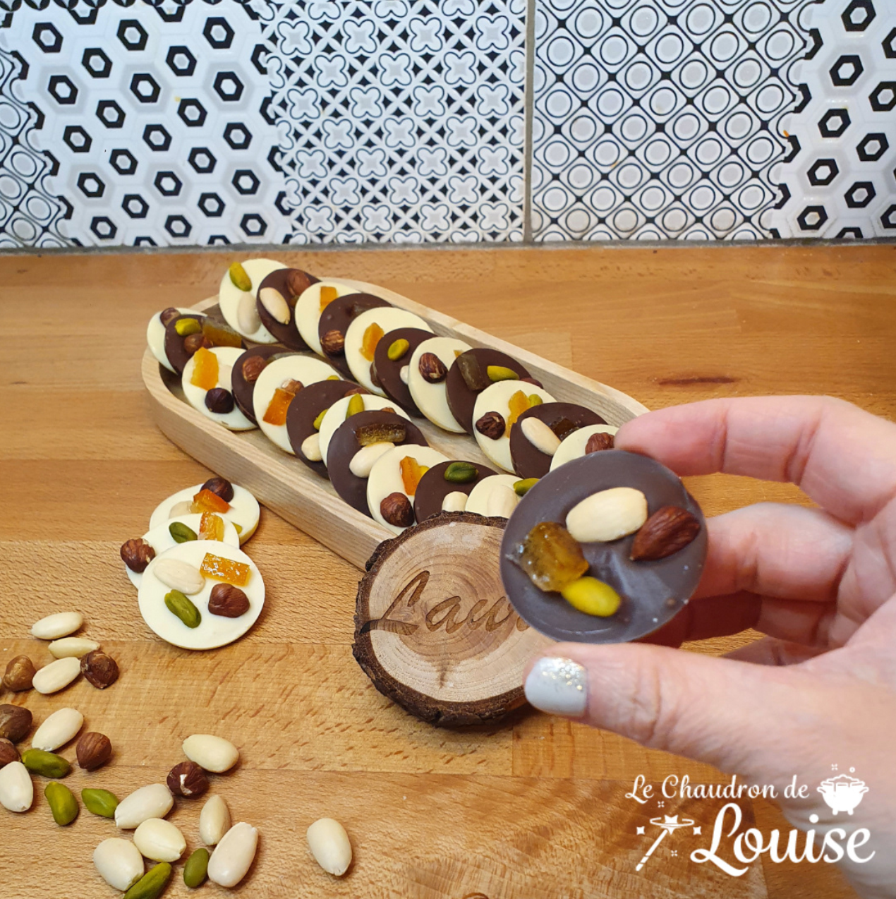 5. Garnir immédiatement chaque mendiant de fruits secs et confits.