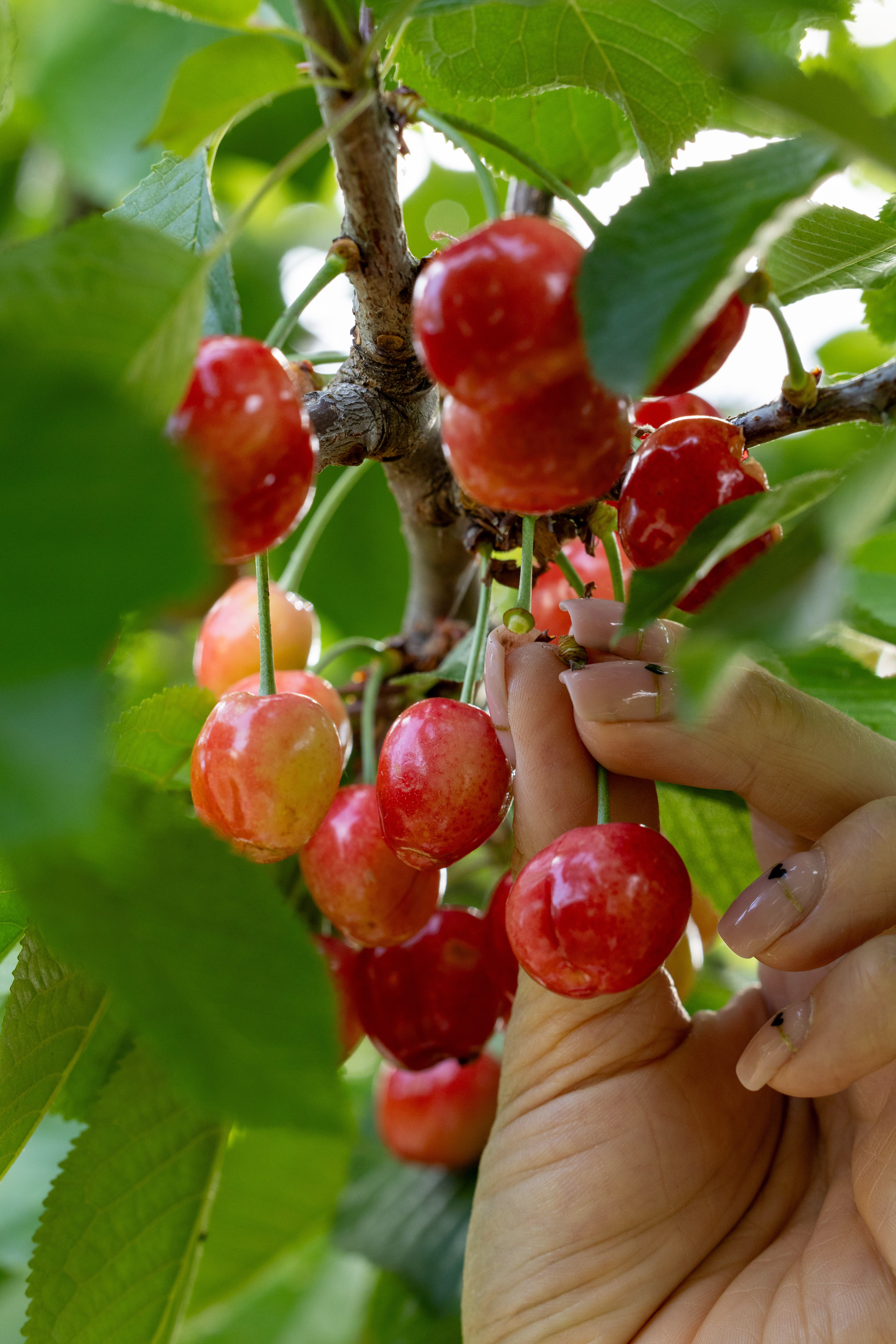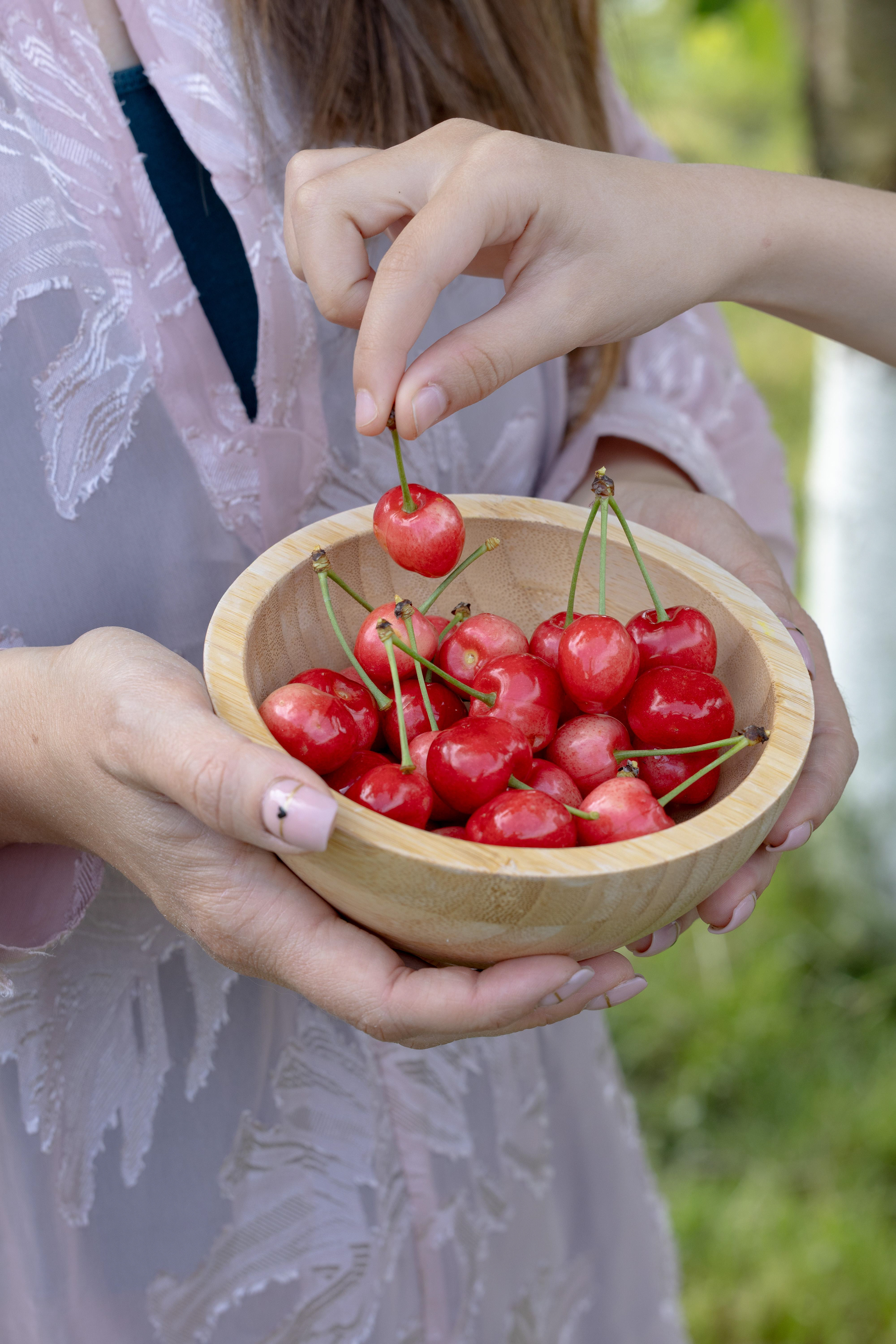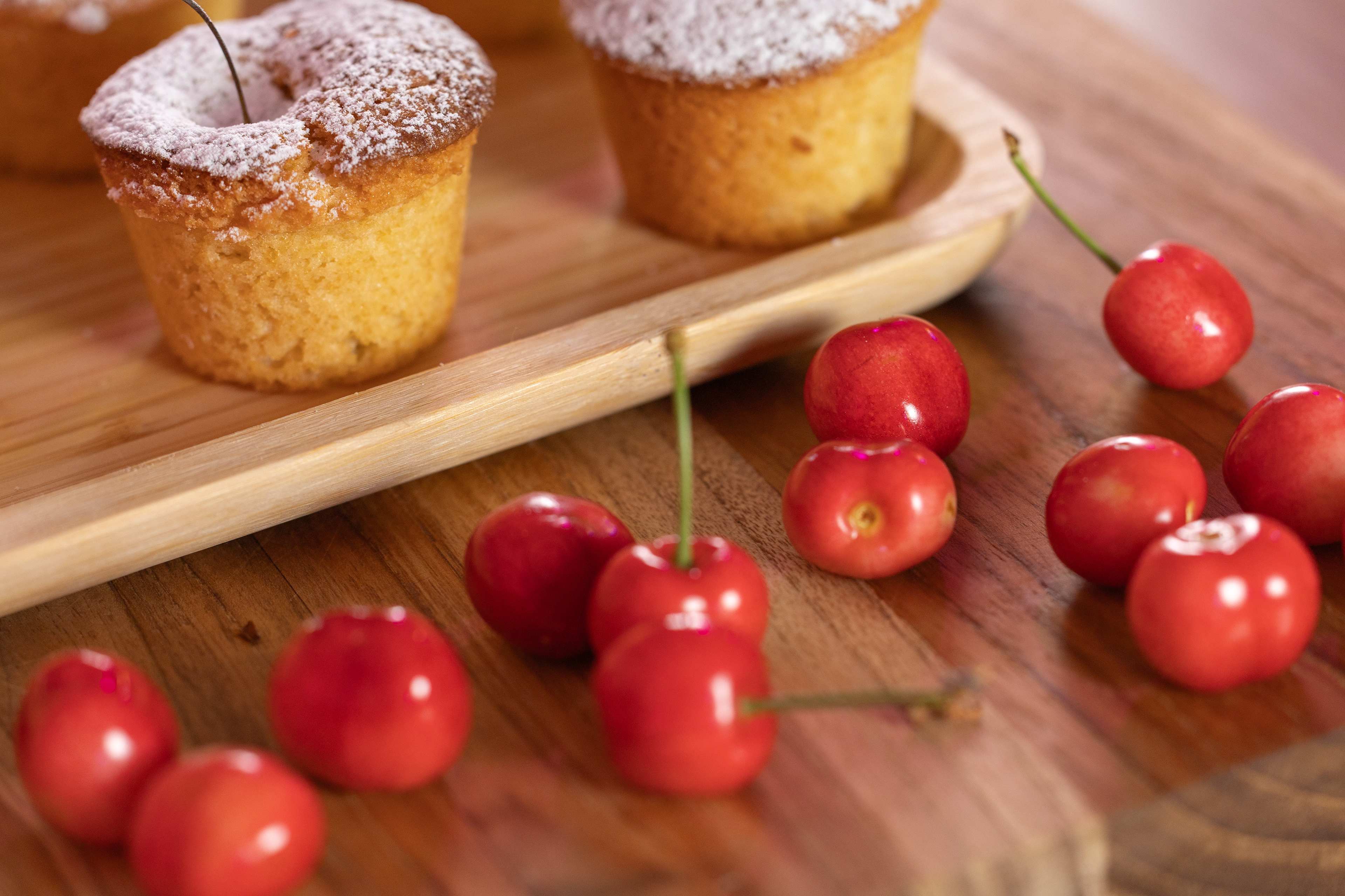 7 - Planter 1 cerise au centre de chaque empreinte en laissant la queue apparente.