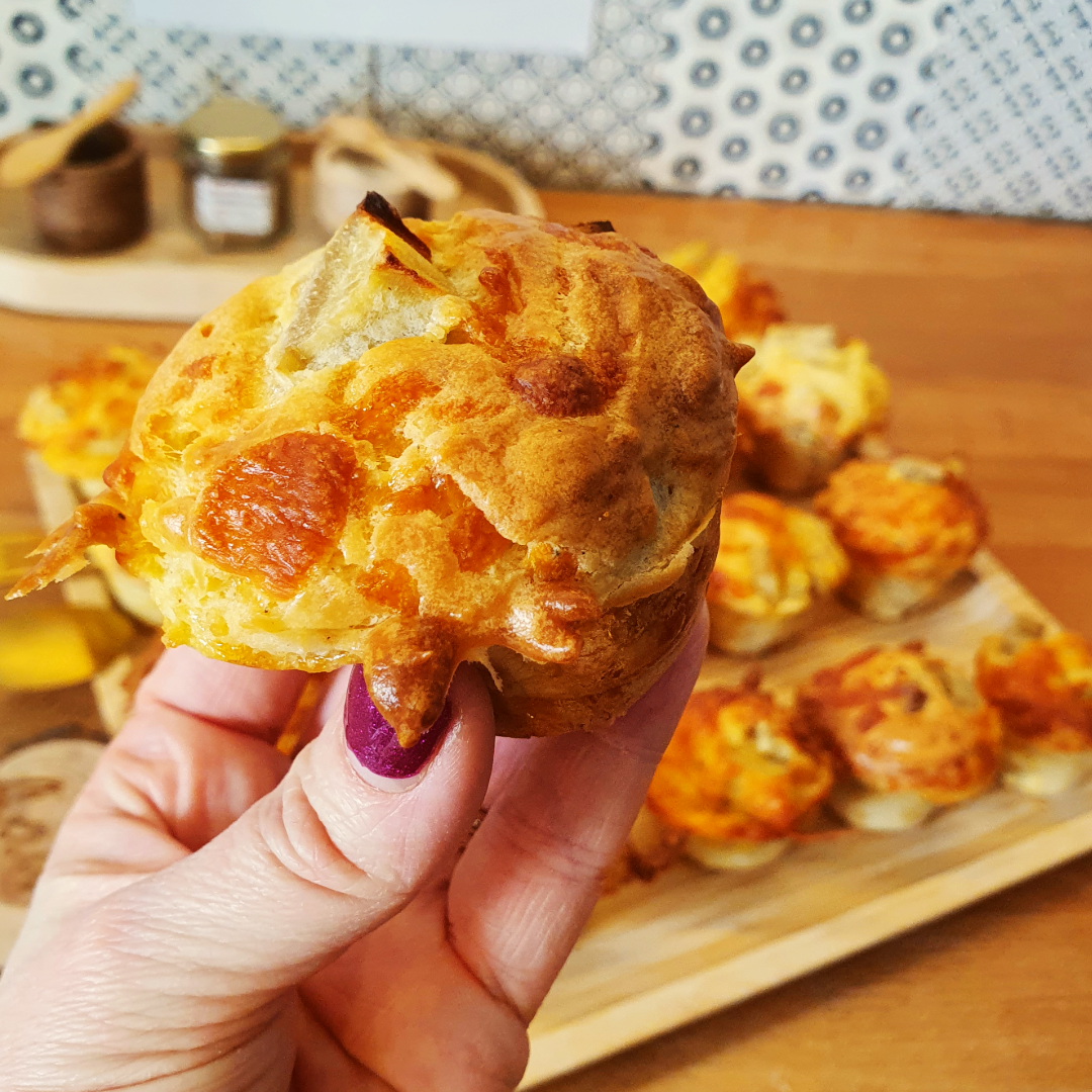 7. Saupoudrer chaque muffin avec le cheddar râpé réservé (30 g).