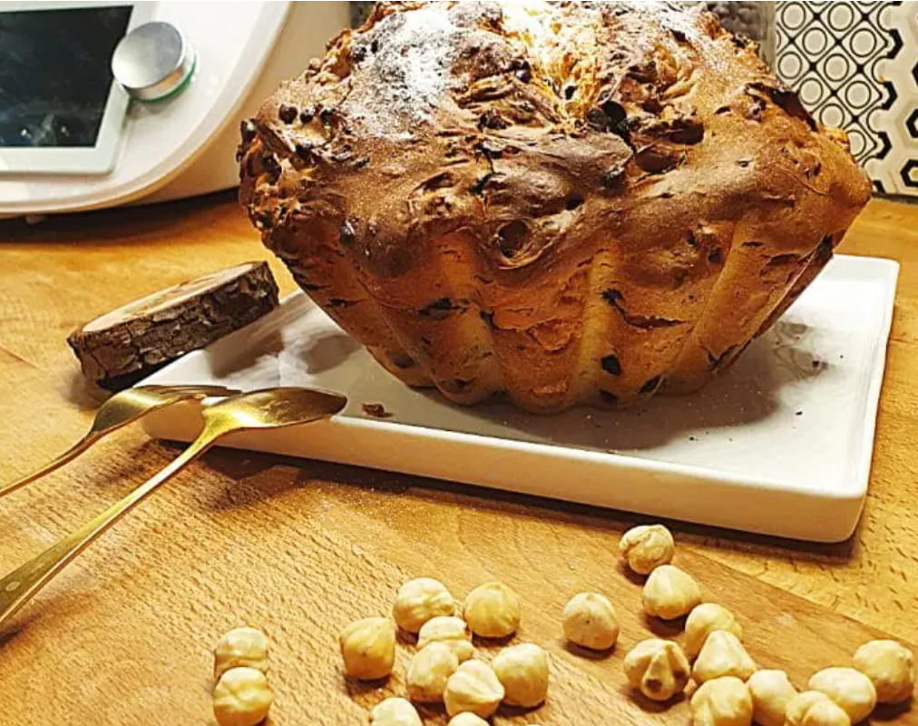 12. À l’aide d’un couteau, faire une croix sur le dessus du panettone et y déposer une noisette de beurre.