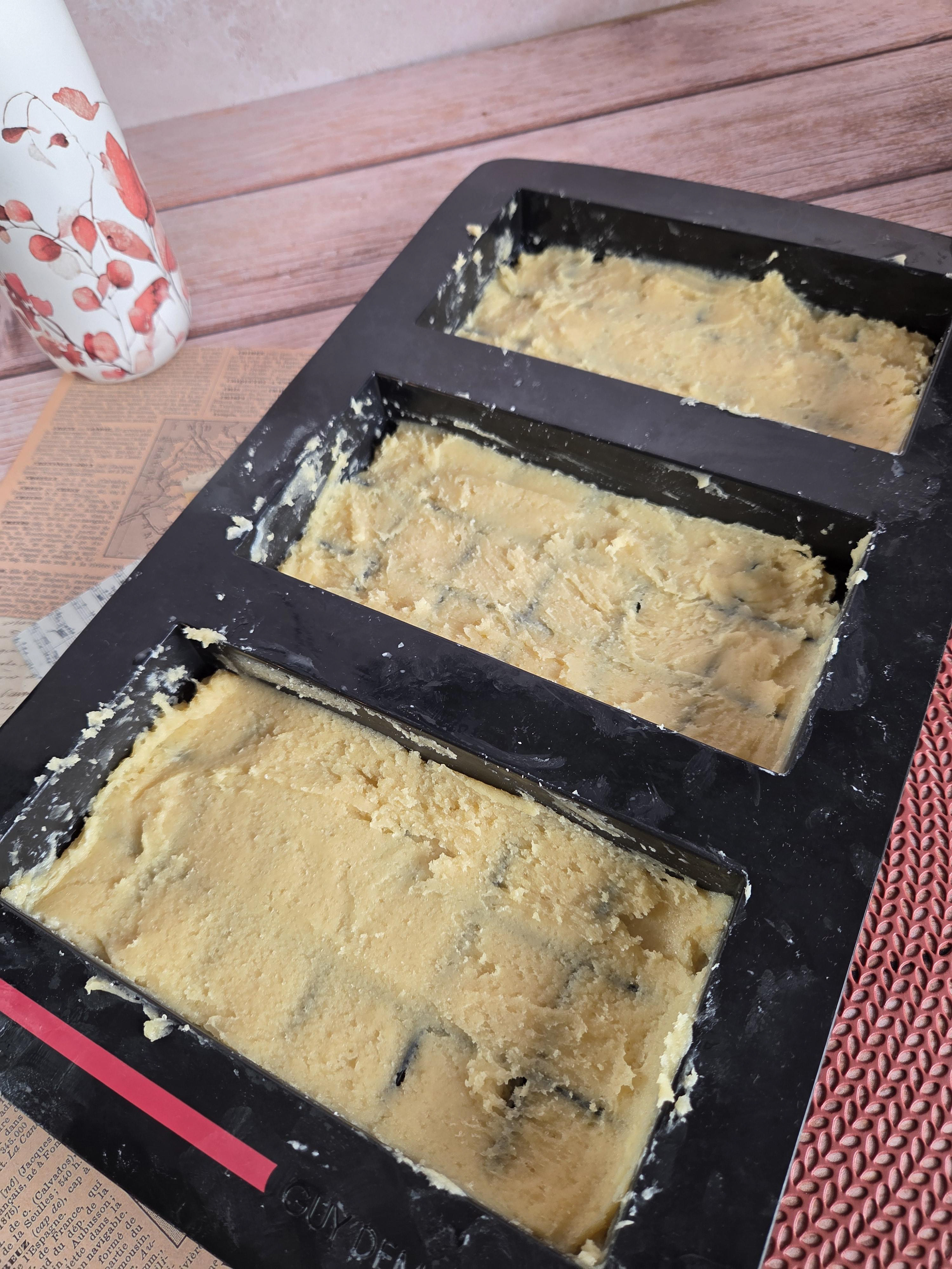 2 - Répartir la pâte dans le moule 3 Tablettes, bien tasser avec le dos d’une cuillère humide.