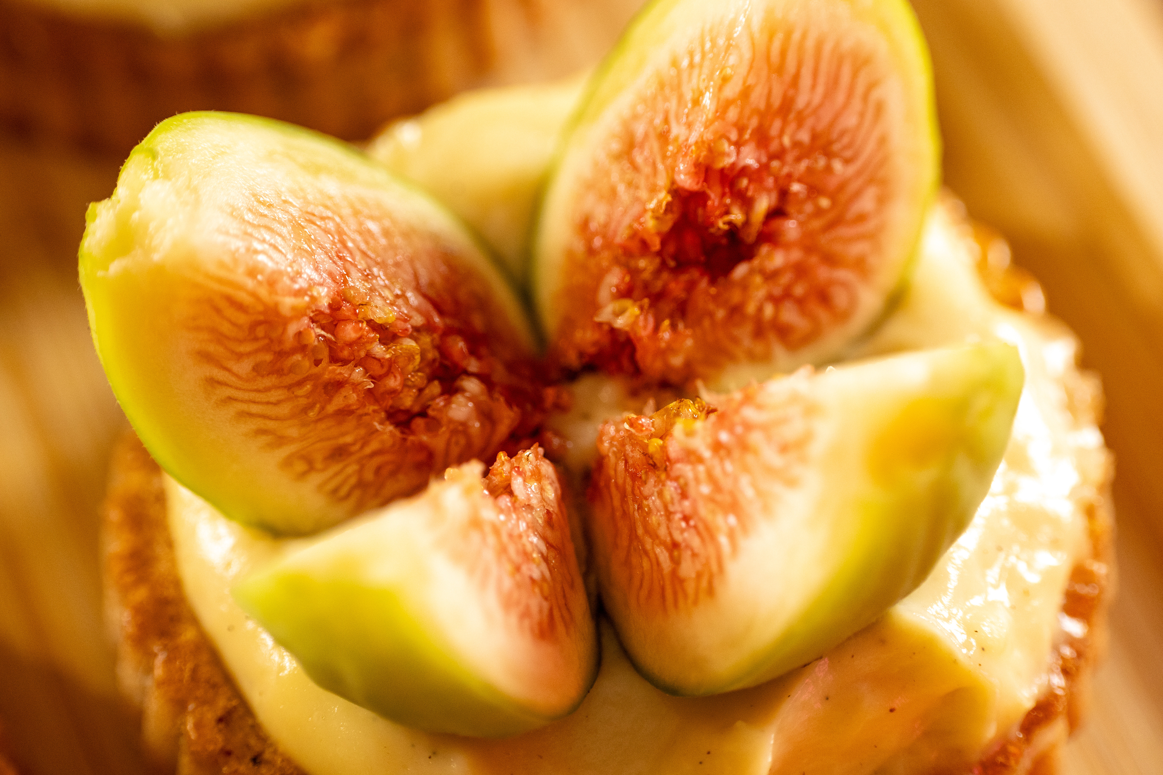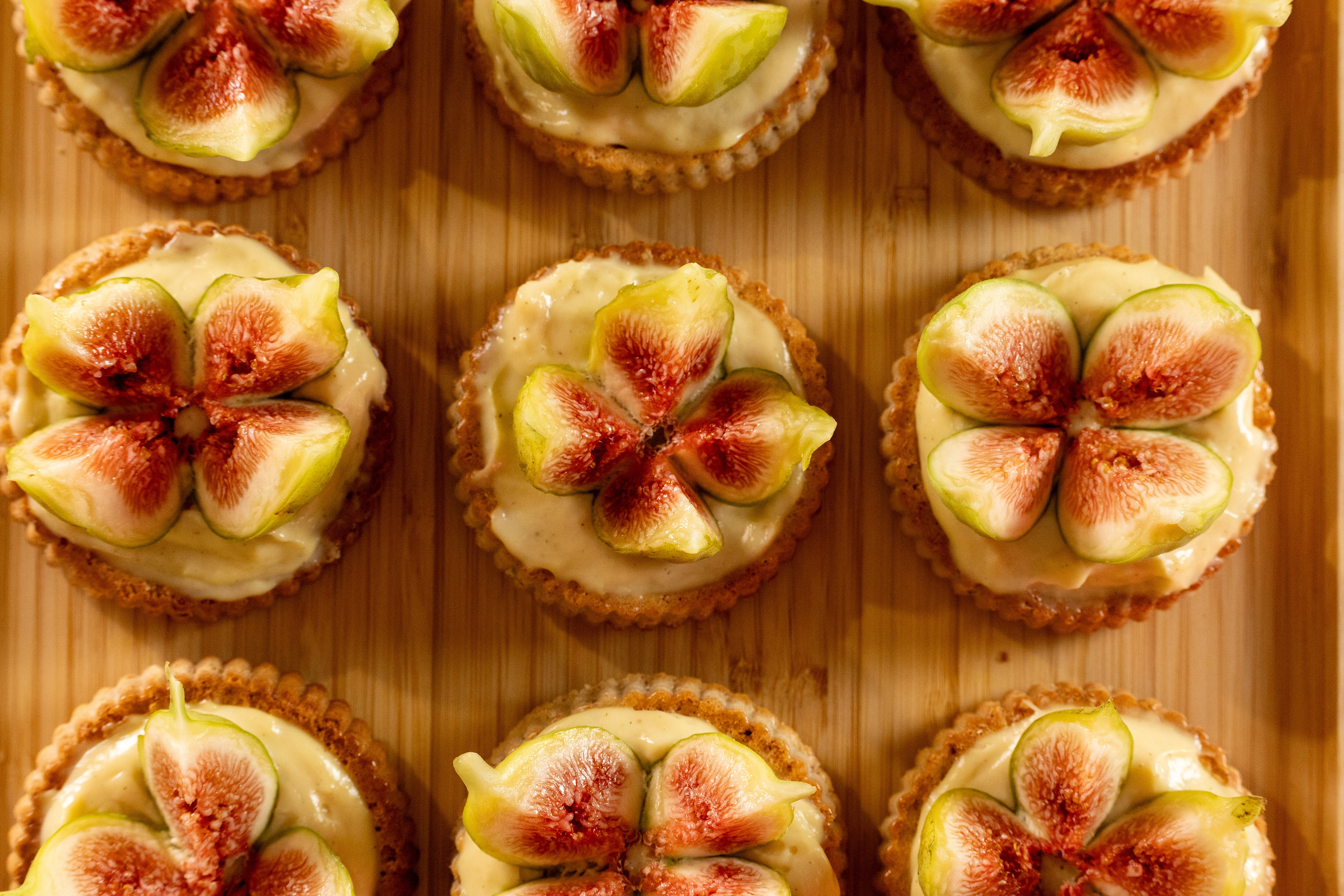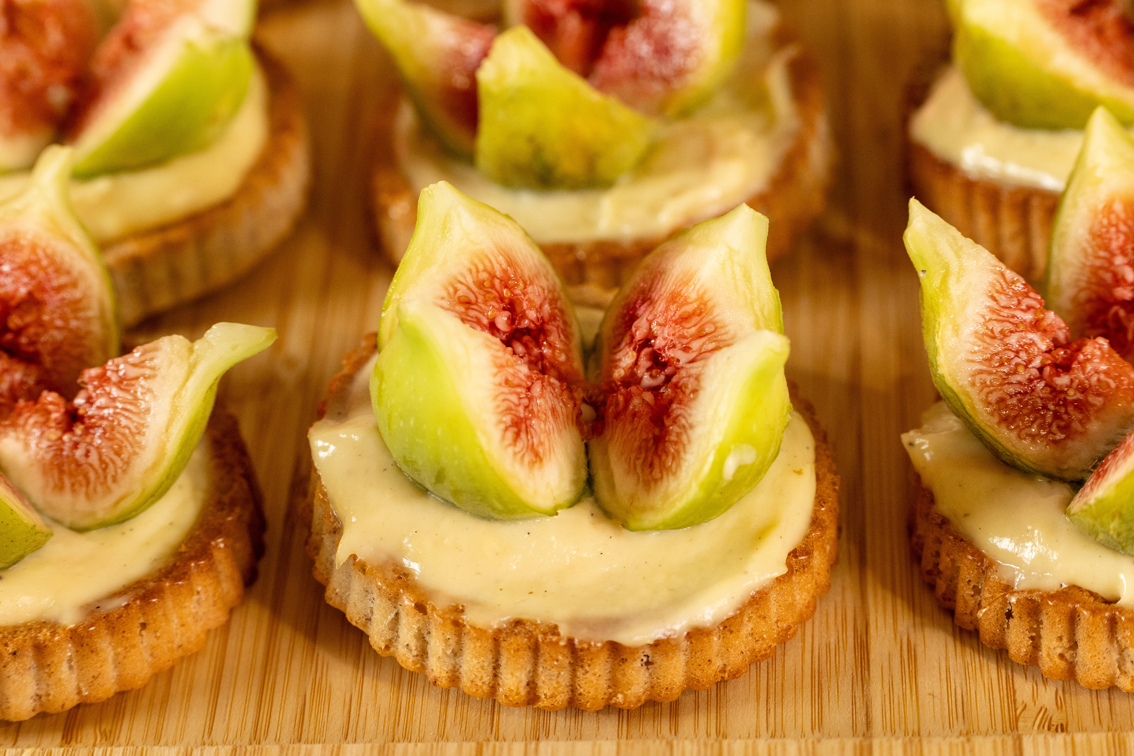 3 - Couper chaque figue en 4 quartiers et en poser une sur chaque tartelette.